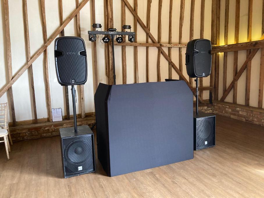 Gold Standard Sound Quality, plug and play ready for DJ to bring there decks and laptop Recommended for 100 - 200 guests