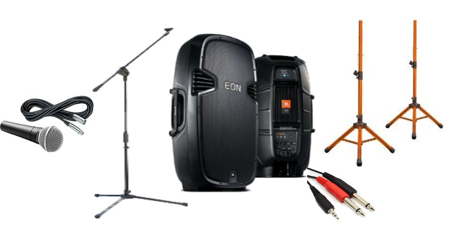 •4 professional JBL PA speakers (includes 2 bass subs and a monitor)